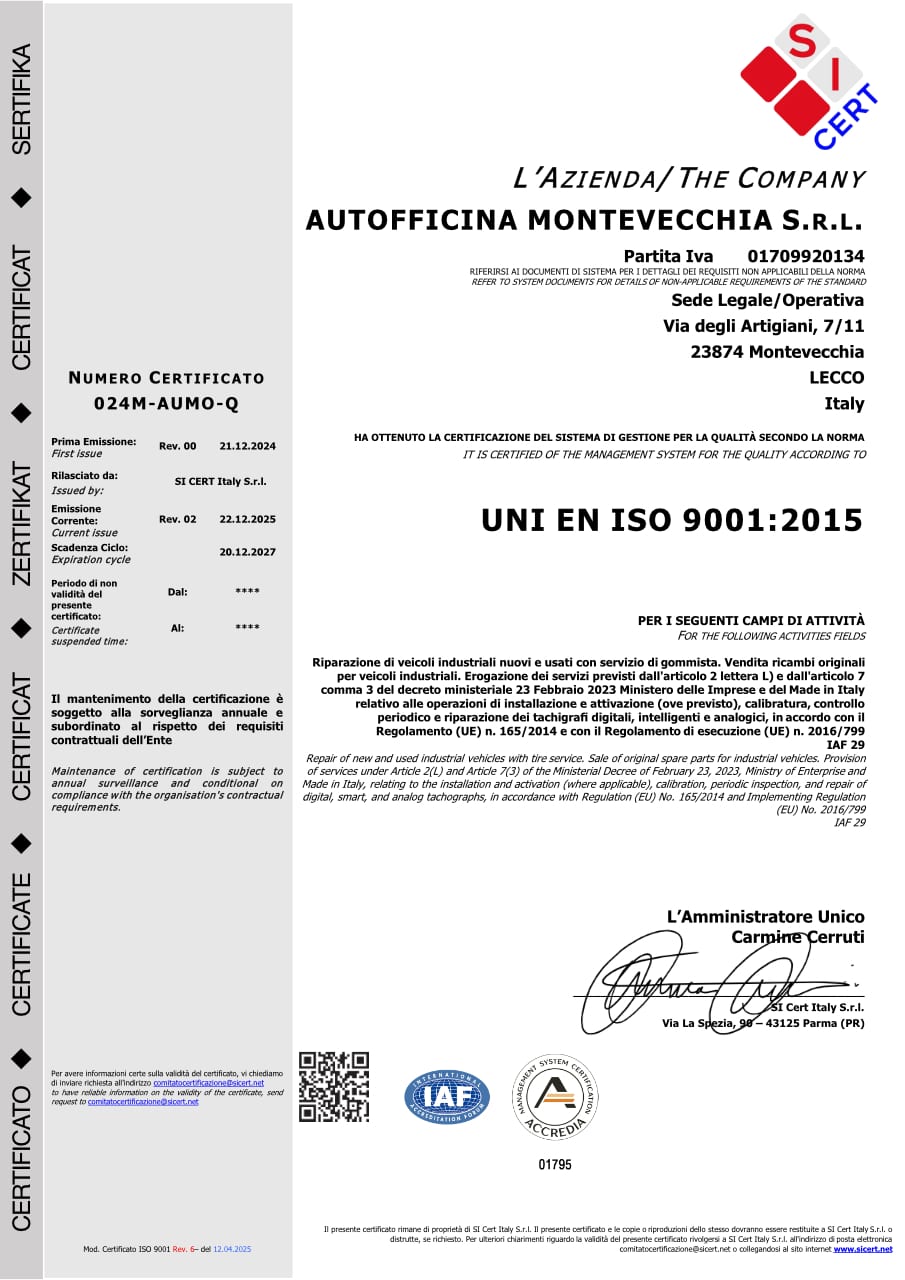 Nel nostro lavoro la differenza non si misura in formule generiche, ma nella qualità della risposta, nella solidità della struttura e nella capacità di esserci quando serve davvero. Questi quattro elementi raccontano in modo essenziale ciò che rende Officina Montevecchia un punto di riferimento credibile per chi lavora ogni giorno con i veicoli industriali.