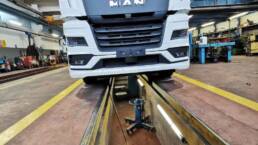 Possediamo tutta l’attrezzatura occorrente per il controllo della geometria degli assi con precisione di misurazione +/- 2 min. e dello strumento di taratura Radar ACC Truck & Bus con laser e grafico coordinate, oltre al pannello taratura telecamera LGS Truck & Bus.