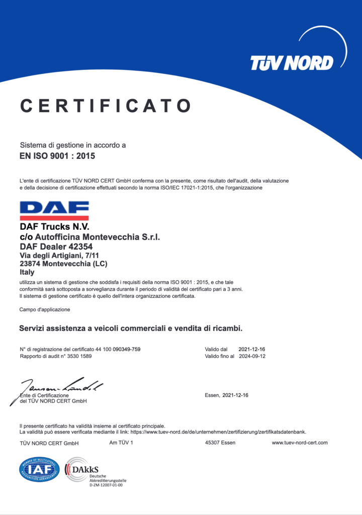 Crediamo fermamente nell’aggiornamento costante e continuo; per noi la formazione è il miglior investimento per assicurare ai Clienti una riparazione a regola d’arte. I nostri tecnici d’officina partecipano con assiduità ai corsi indetti presso le Case Costruttrici MAN e DAF, oltre a seguire mensilmente percorsi ben definiti di web training.